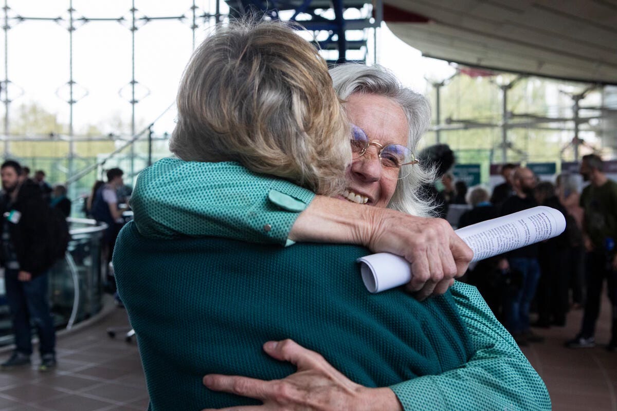 As I explained in a preview last week, the case was brought by a group of Swiss women, mostly in their seventies or older, who are backed by Greenpeace. To give themselves legal standing, they formed an association called KlimaSeniorinnen – meaning senior women for climate protection.