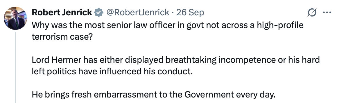 And yet the shadow justice secretary immediately held Hermer personally responsible: