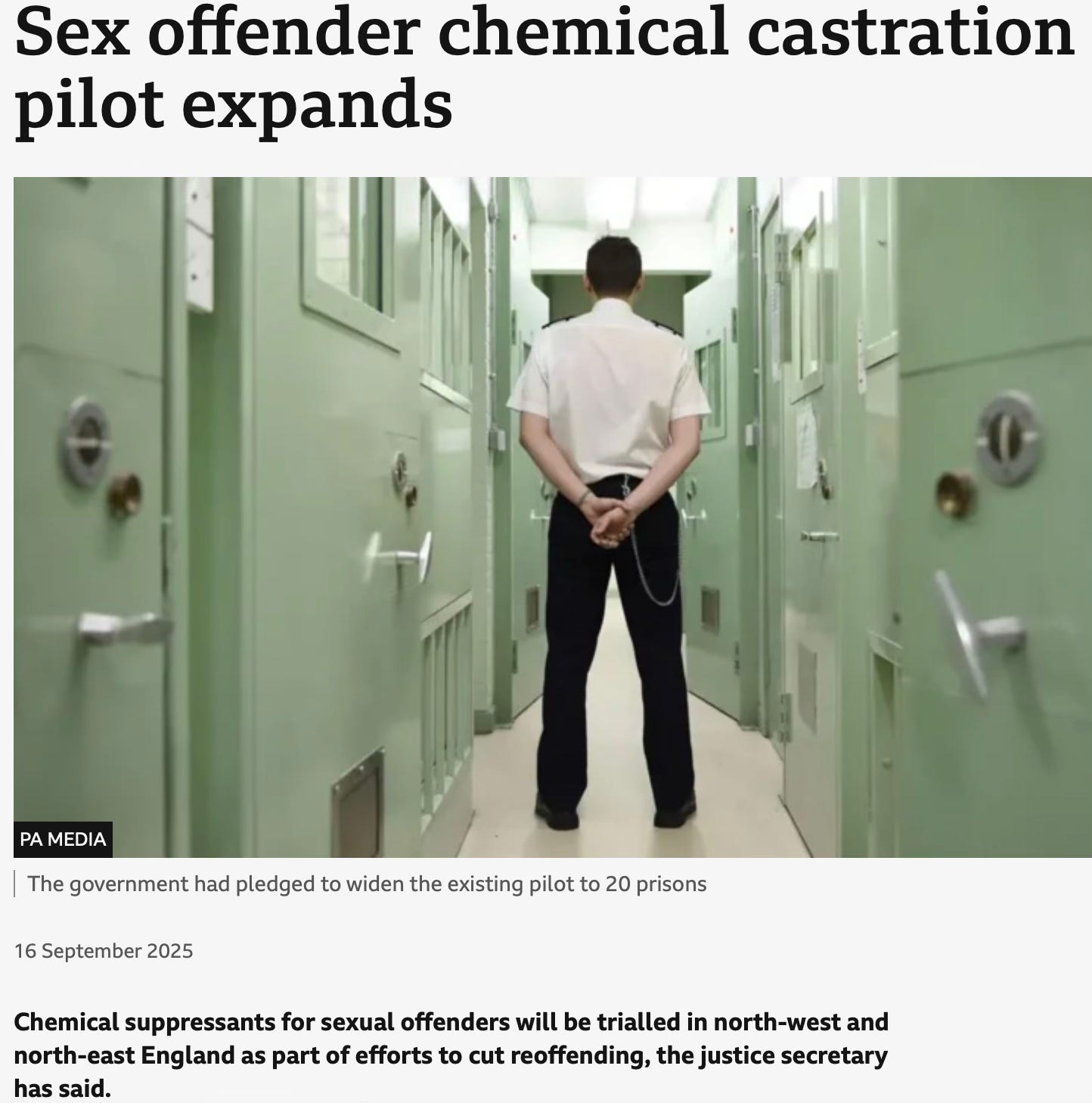 Why did the ministry announced this in a press release yesterday? The justice secretary David Lammy had already told MPs two days earlier that “medication to manage problematic sexual arousal” would be offered to all prisoners in the future.